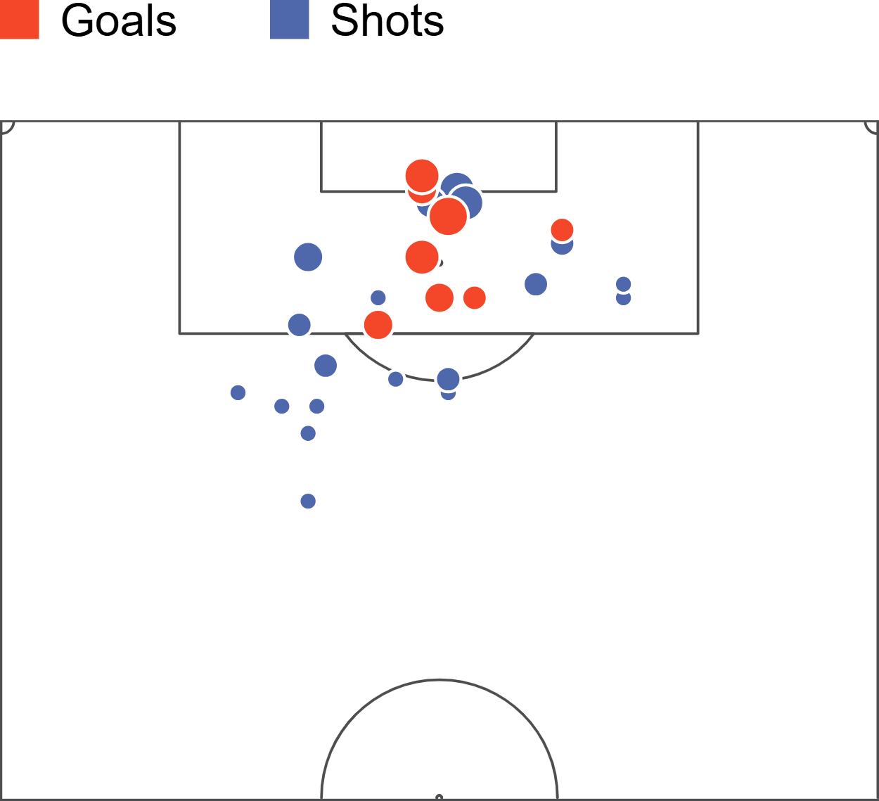A look at his shot map for the season also shows a player who is always ready to get on the end of things in the centre of the opposition box.