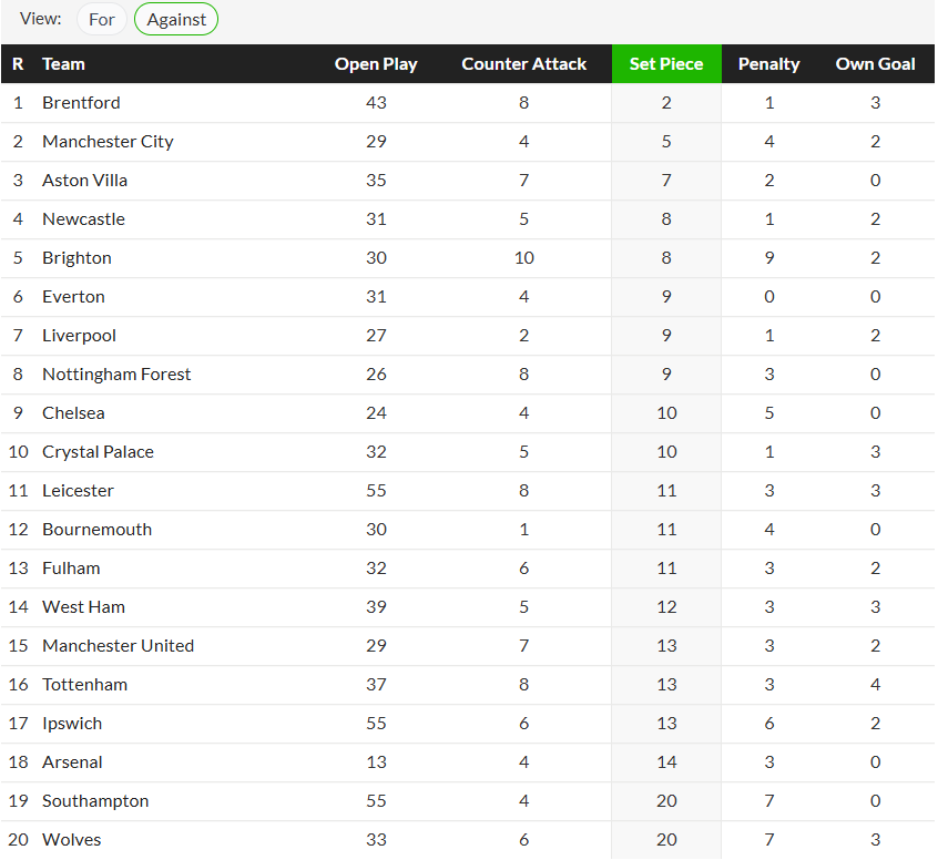 It is also interesting to note that purported specialists Arsenal conceded 14 in this manner, despite their impressive record in the opposition box.